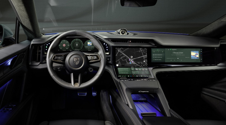 内饰设计也已经得到了曝光,从整个内饰布局来看,非常合理,也有着不错的精致感与时尚感。我们的第一印象就是传统物理按键取消了,传统的换挡机构也被电子怀挡所取代。更有意思的是,纯电版保时捷卡宴还搭载了超大的行车电脑,也拥有酷似曲屏样式的中控屏幕设计,这一点确实看起来有些与众不同。整个内饰已经看不到原来复杂设计的传统燃油保时捷了,取而代之的是更加电气化,而且空间感更好的保时捷卡宴系列。