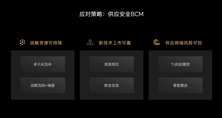 针对这样的资源当下,除了要去做多元化以外和当下的合作伙伴怎么做战略的互锁,争取一些优先级,这是在应对战略资源上做的两个方向。