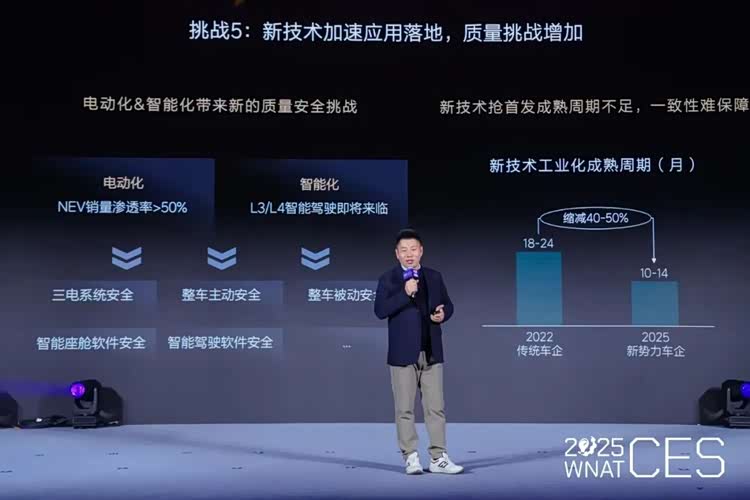 挑战五,新技术加速应用落地,质量挑战加速。汽车做了100多年了,在机械安全上还是蛮可靠的,但现在伴随着电子的用量、软件的用量,在电子安全、电化学安全、软件安全上挑战越来越大。