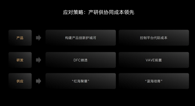 今年我们把成本作为所有平台化产品的经营主线。除了每个平台产品的产品力和用户价值不断要提升以外,成本一定要作为经营主线,因为基本上是平台产品的经营成功就决定了整车产品的经营成功。所以这是在产品维度要做的。