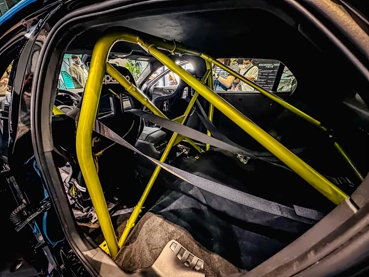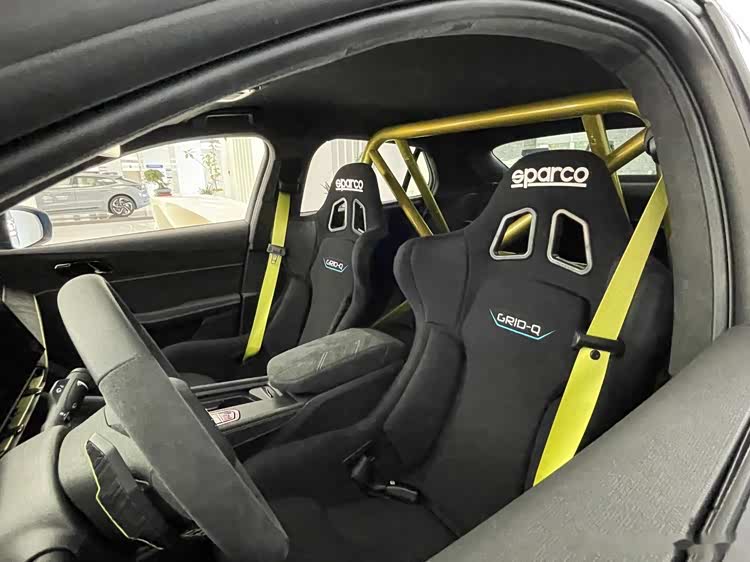 驾驶席也采用了标准的赛车配置,座椅采用赛车专用桶形结构,搭配多点式安全带,能将驾驶者牢牢固定在座位上,在高速过弯时大限度减少身体位移。方向盘上也集成了赛事通信、模式切换等专用按键,传统的仪表台仅布局了一块可快速读取数据的单屏信息系统,转速、油压、水温等关键参数一目了然。值得一提的是,整车没有配备后备厢,后排座椅也被防滚架占据,所有的“空间”都服务于驾驶者、安全设备和竞赛所需的电子系统,从这点来看,这款车型并不太适合日常家用。