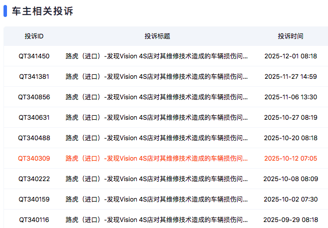 值得注意的是,平台上的记录显示,这并非李先生第一次就同一问题进行投诉。从2025年9月到12月,他已多次提交内容几乎一致的投诉,但问题始终悬而未决。