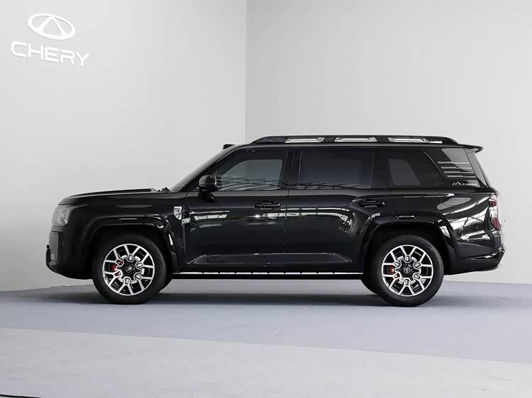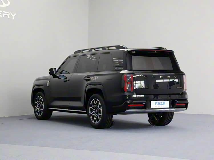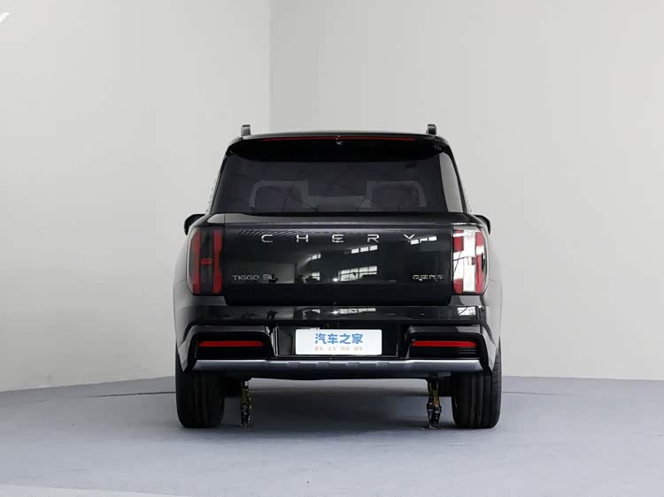 再来看车尾部分,车尾设计与前脸形成呼应,两侧竖置的尾灯面积很大,熏黑的配色点亮后辨识度出色,而中央 “CHERY” 英文标识。尾灯下方的粗壮镀铬饰条连接两侧灯组,拉伸横向视觉宽度,让车尾更显稳重。后包围采用双层设计,上方黑色饰板与下方银色护板形成反差,双边共两出排气装饰(燃油版为真排气)强化运动氛围,扩散器结构则优化了空气动力学表现。