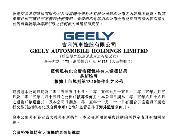 12月10日,吉利汽车控股有限公司发布的一则公告,为近期备受关注的极氪私有化交易画上了阶段性的句点。根据公告,极氪的持有人对价选择结果已经出炉,最终的落地方案也已明确,这意味着吉利集团酝酿已久的“回归一个吉利”大整合,真正进入了最后的收官阶段。