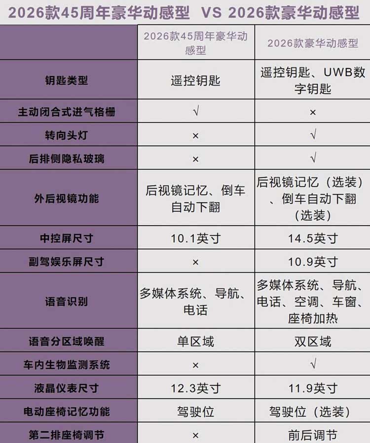 全新奥迪Q5L是否真的减配了,根据某平台公布的配置信息,我们选择2026款 45周年典藏版 40 TFSI 豪华动感型和即将上市的2026款豪华动感型进行比较。