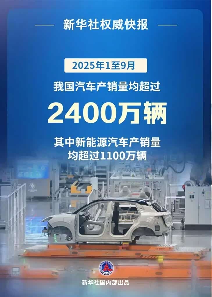 图/2025年1-9月新能源车产销双超1100万辆
