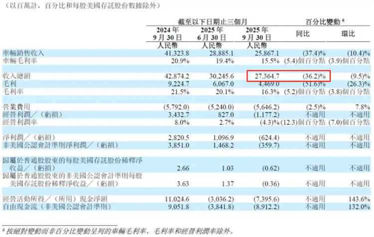 图/2025年Q3小鹏汽车财报部分数据