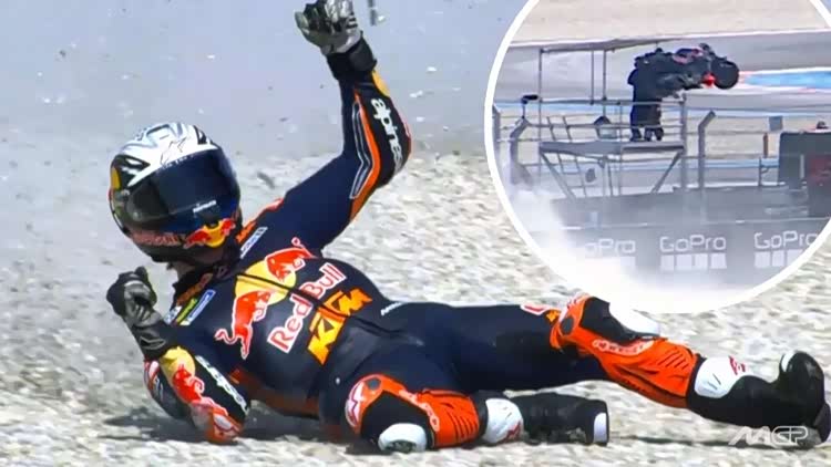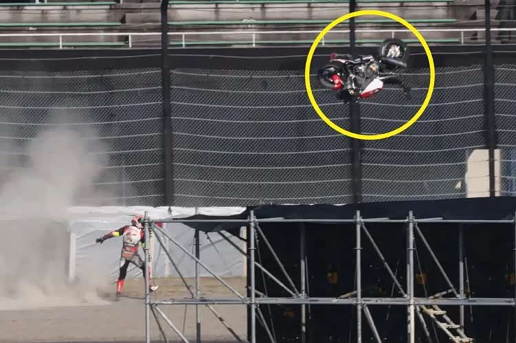 米勒还在铃鹿8耐排位赛发生了一次极具戏剧性的摔车,赛车高高越起几乎飞到了看台的高度。