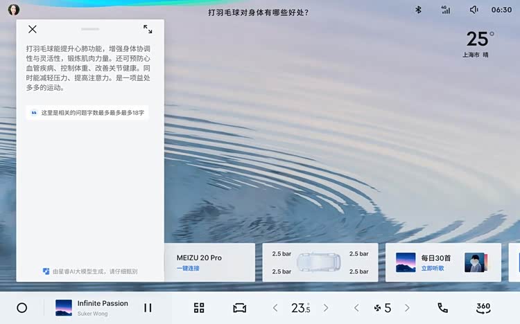 从功能架构看,车机端的AI银河精灵堪称移动生活助手。它不仅能实现情感应答,在通勤路上陪你聊心情、解压力。还能化身懂车专家,解答续航计算、充电建议等用车问题。更覆盖资讯百科、多意图识别等生活场景,从天气查询到美食推荐,满足用户多样化需求。而手机端的AI银河精灵则进一步打通了人-车生态,用户只需在对话框发送目的地地址,上车后车机便自动显示导航信息;若遇到感兴趣的文章片段,发送至车机后,AI精灵会自动调用多媒体播放朗读,让碎片时间更有价值。