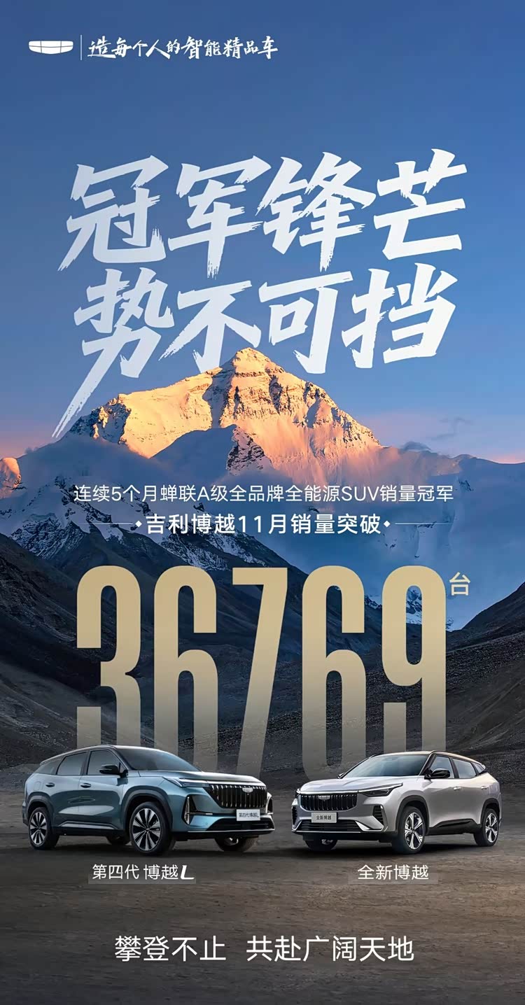 11月车市的硝烟尚未散尽, 吉利博越(参数|询价)系列便以36769台的销量成绩再次证明了其“国民神车”的市场号召力。而在这波热销中,刚于5月上市的第四代博越L功不可没——作为10万级燃油SUV市场的“东方美学教科书”,它用一套融合传统山水意境与现代科技的设计语言,重新定义了中国家庭对“大美中国车”的审美期待。