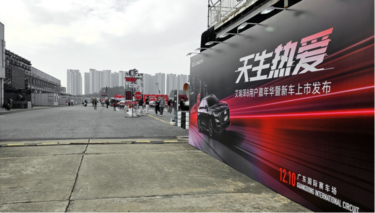 走进维修区,映入眼帘的便是今天的主角, 艾瑞泽8 PRO(参数|询价) 400T!拥有赛车拉花加上这样的赛道氛围,作为血气方刚的年轻人,我是忍不住的!要立即上车感受一下!