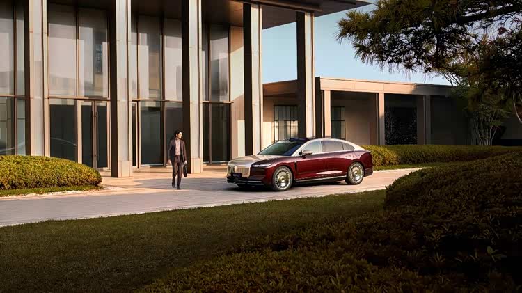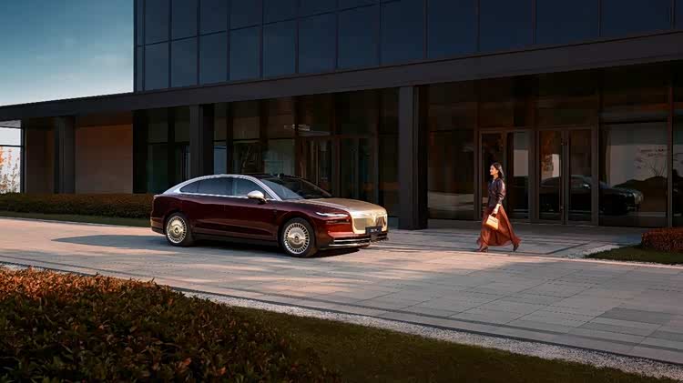 新车提供双拼与纯色总计6种外观颜色,包括金耀黑、金銮红两大双拼配色及杜若白、宸星灰、香槟金和玄英黑四款纯色车身。车身尺寸达5125/1985/1522mm,轴距达3010mm,恢弘体量自带舒展大气的旗舰气场。前脸采用“鲲鹏展翼”造型,彰显前瞻视野与沉稳气场,配合“击水三千”LED大灯及动感流畅的车身线条,打造极强辨识度。细节之中,更添巧思。20英寸「光晖」轮毂彰显豪华格调,悬浮车标在轮毂转动中始终保持静止,呼应“晖映前路,光晖远照”的自信姿态,动静之间尽显东方豪华气韵。
