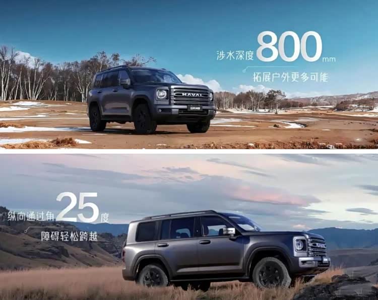 动力系统方面,新车搭载代号GW4D24的2.4T柴油发动机,官方数据显示最大功率137kW(186马力),峰值扭矩490N·m,匹配纵置9挡自动变速箱。柴油动力的优势在高原环境中尤为明显,通过“双切向进气道”燃烧系统优化,在海拔4700米的垭口仍能保持动力不衰减。底盘采用前双叉臂+后整体桥悬挂,接近角45°、离去角38°,满载状态下可通过45%坡度,垂直越障高度达600毫米,综合性能超越坦克500等同级车型。