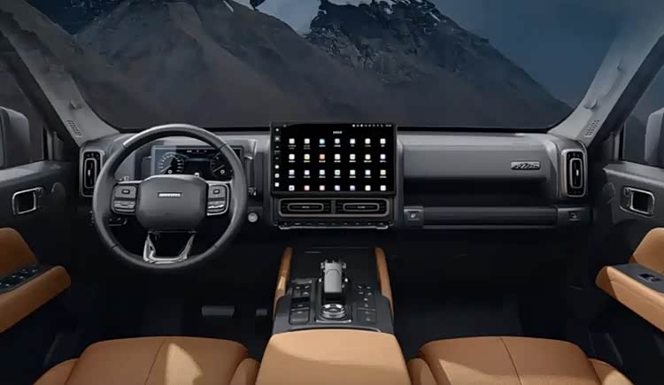 内饰以实用耐造为核心,采用黑棕双色搭配,10.25英寸液晶仪表盘与14.6英寸中控屏的搭配,兼顾了科技感与实用性。配置上完美平衡越野与舒适,不仅标配前排座椅通风/加热功能,第二排座椅靠背角度可调范围达32度,还搭载L2级辅助驾驶系统,支持30-140km/h全速域巡航与车道保持功能,高速长途行驶时可大幅缓解疲劳。作为同级少有的标配三把差速锁的车型,其前桥电控锁、中央博格华纳TOD适时四驱锁止机构与后桥机械锁的组合,配合9种驾驶模式,单轮着地即可实现脱困。