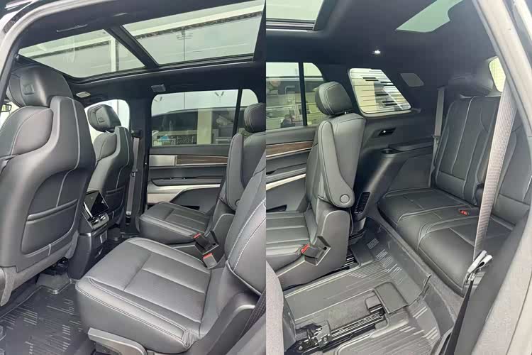 座椅方面,新车采用2+2+2六座布局,前两排座椅预计将提供丰富的调节、加热、通风与按摩功能,内门板上的座椅调节按键便于操作。前全景天窗与后天幕的设计,则让车内空间更显通透开阔。后排还配备独立控制屏,方便后排乘客调节空调、娱乐等设置。