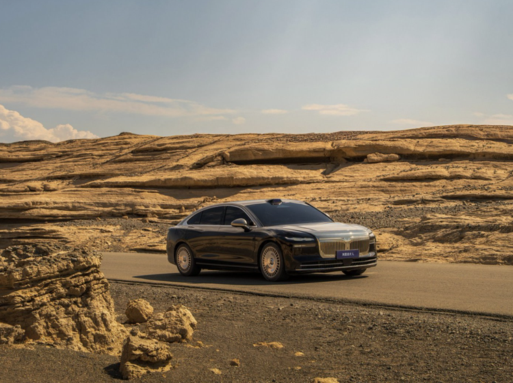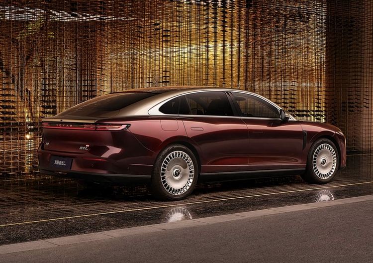 侧面采用类似弧顶设计的大溜背造型,双拼配色车身配合20英寸「光晖」轮毂,不但奢华有格调,还颇具辨识度。尺寸上,新车长宽高达到5125/1985/1522mm,轴距达3010mm,肉眼可见的大气尊贵。