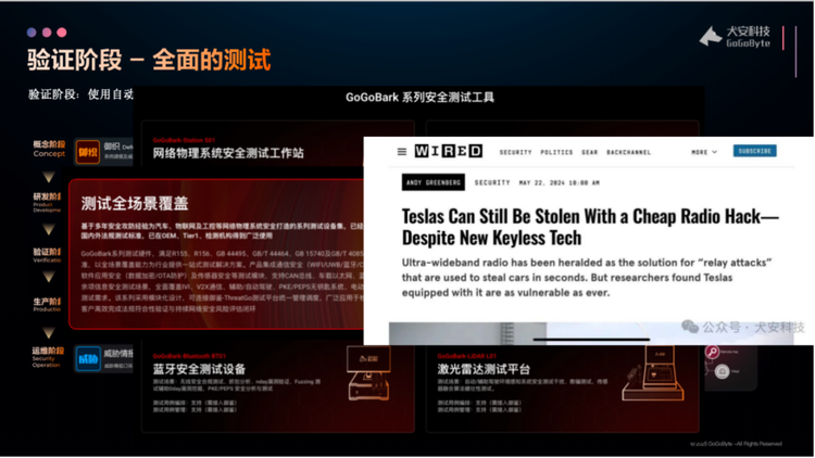 但是在汽车领域不一样,这种需要把安全设计前置,系统化地设计好、分析好,才能够避免后面修复成本过高、修复不了的问题。我们亲自挖的漏洞十个里面有八个都修复不了,你要修复的代价极高。