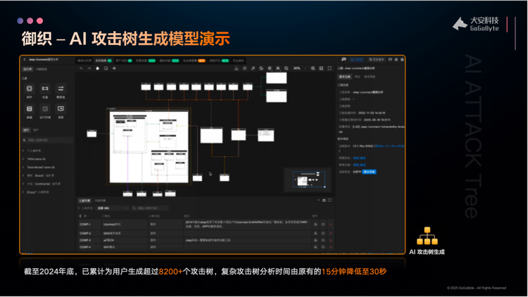 至于AI如何赋能网络安全,李均举了个生动的例子:“AI 能帮我们精准拆解攻击者的完整攻击路径。就拿偷车来说,它能基于车辆的系统架构、数据指令传输链路,推演一套完整的攻击可行性方案。”