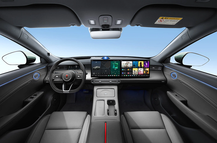 进入车内,红旗HS6 PHEV的内饰风格注重营造豪华与科技并存的座舱氛围。车内采用了大量软性材质包裹和精细的缝线工艺,触感高级。