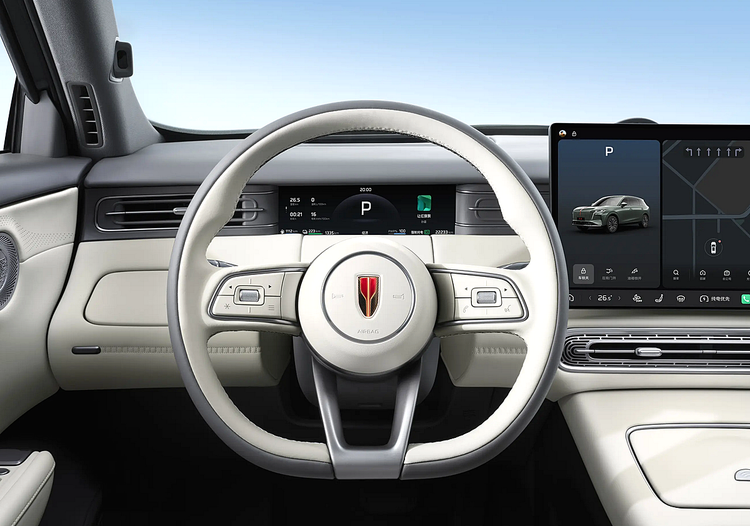 智能座舱的核心是一块15.6英寸的悬浮式中控屏,内置了功能丰富的车载信息娱乐系统,支持导航、语音识别控制及多种在线服务,操作流畅,界面直观。