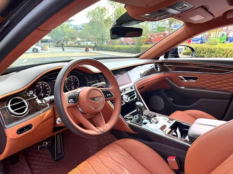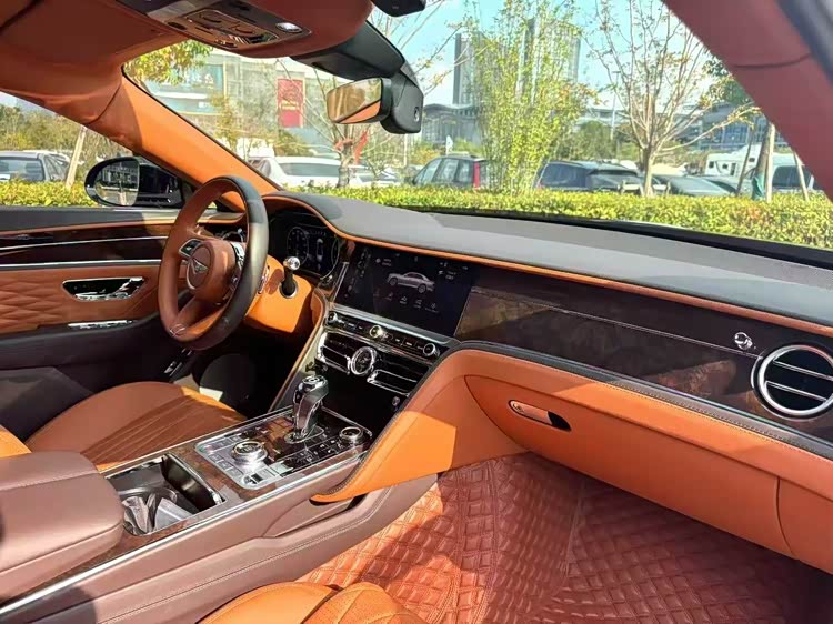 21年宾利飞驰V8 黑色外观/纽马克特褐内饰 配置:黑檀木面板、抬头显示、座椅通风加热按摩、升降飞翼立标、翻转屏、穆勒内饰、穆勒中网等配置到顶