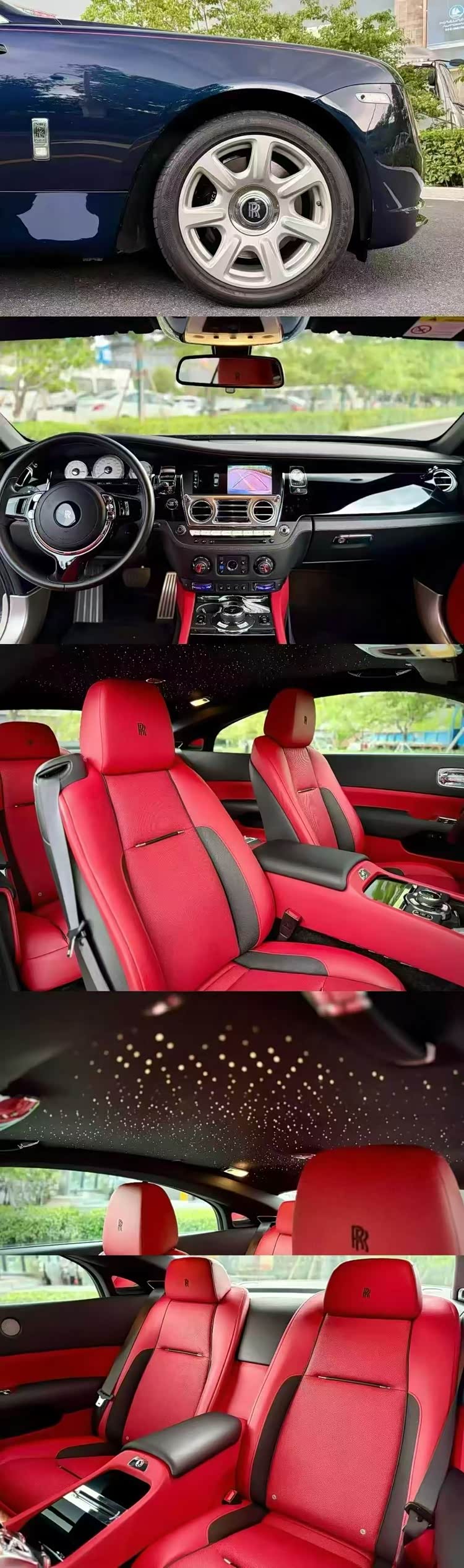 18年劳斯莱斯魅影 午夜蓝外观/黑红双拼内饰,配置 :星空顶、头枕刺绣、座椅通风加热、黑色卡钳,黑钢琴木面板等