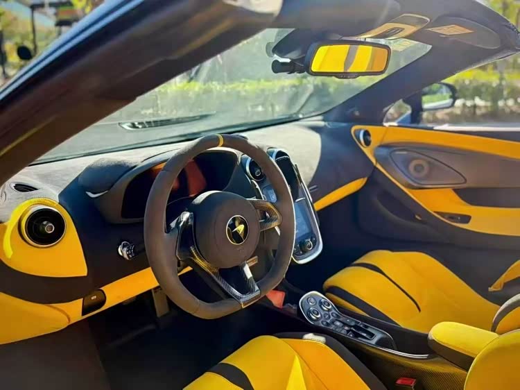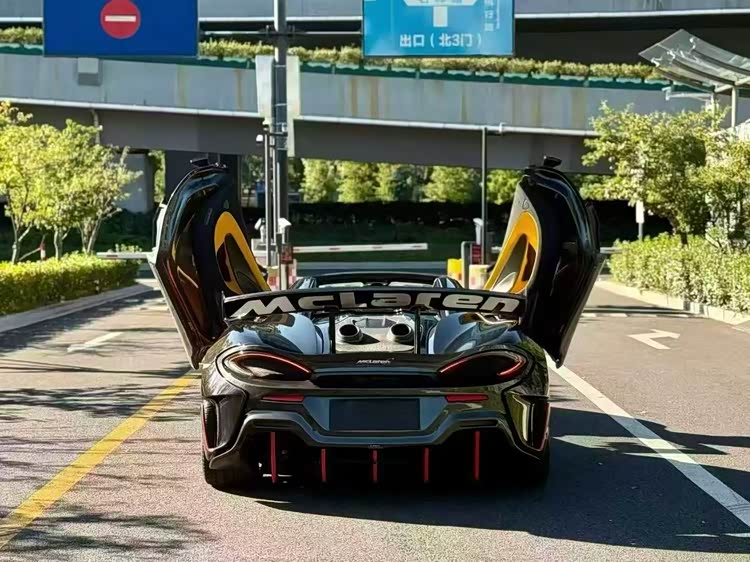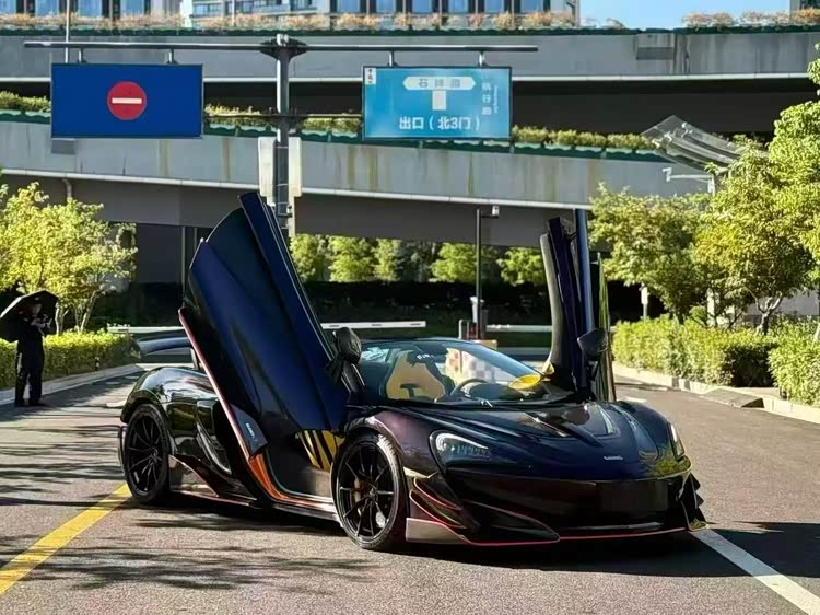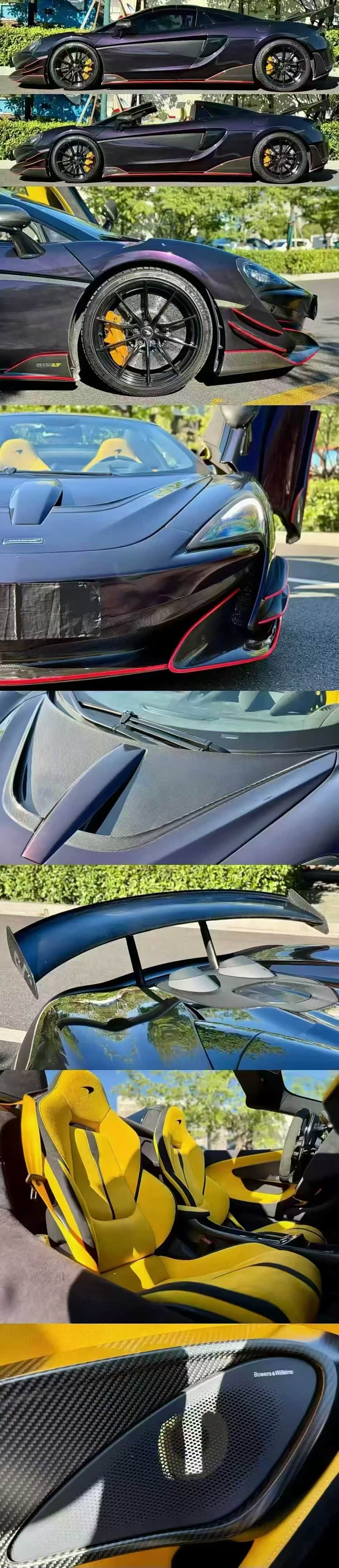 20年迈凯伦600LT 橙色外观贴紫色车衣,黄黑翻毛皮内饰 配置:熏黑轮毂,宝华韦健音响, 碳纤维前铲,碳纤维大尾翼 碳陶刹车 配置拉满