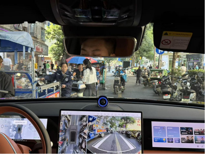 当然,整个智驾体验中,最让我印象深刻的是面对突然出现的“鬼探头”自行车,系统在人类驾驶员尚未完全反应时已完成减速避让,让人非常安心。另外,我们在遇到有货车卸货时,