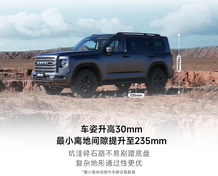 为了满足越野性能需求,二代哈弗H9穿越版构建起“续航+通过+可靠”的三重保障。续航层面,新车采用双油箱设计,总容积达131L,搭配双油泵独立工作系统,确保极端环境下的供油稳定性,满油状态下可实现1400公里超长续航,轻松应对戈壁、荒漠等无补给路段。车身与车架的高强度设计,更为双油箱提供了坚实的安全防护。