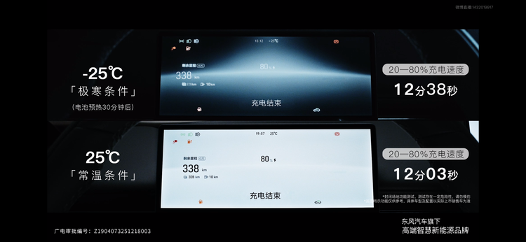 追光L拥有全域800V架构,63kWh大容量电池并且支持5C超充,拥有目前混动轿车最长的410km纯电续航,和20%-80%SOC快充12分钟的纪录。尤其在发布会上展示的-25°C极寒环境与25°C常温环境的充电速度对比,两者相差只有35秒,均在13分钟以内,很好地消除了北方用户对于新能源车的使用焦虑。