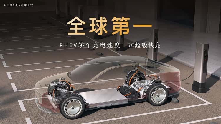 即使需要充电,5C超级快充技术让电量从20%充至80%仅需12分钟,相当于喝一杯咖啡的时间,就能补充200km的续航,这也是插混轿车之最。