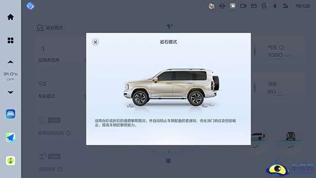 动力与底盘堪称 “穿越利器”。搭载 2.4T 柴油发动机与 9AT 变速箱,最大功率137千瓦,峰值扭矩490牛·米,此外,131L 双油箱带来 1400 公里超长续航,彻底解决长途补给焦虑。动力输出强劲平顺,配合长城领先的柴油技术,极端环境下预热与散热表现出色。底盘悬架材质升级,搭配原厂升高的车身姿态,最小离地间隙提升 11mm,接近角与通过角同步优化。前后桥电控限滑差速锁、博格华纳TOD适时四驱系统,“三把锁”、9 种驾驶模式、新增岩石模式和专家模式,坦克转弯等配置加持,新手也能从容应对复杂路况。另外还具备2.5吨拖车资质。