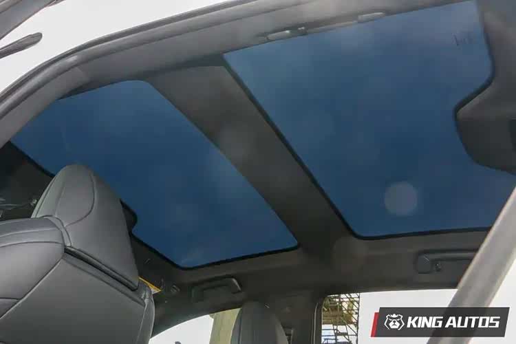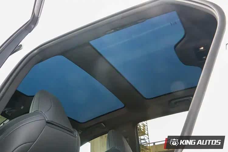 电控式玻璃车顶,玻璃可以迅速地在雾面与透彻间切换。此为透彻状态。