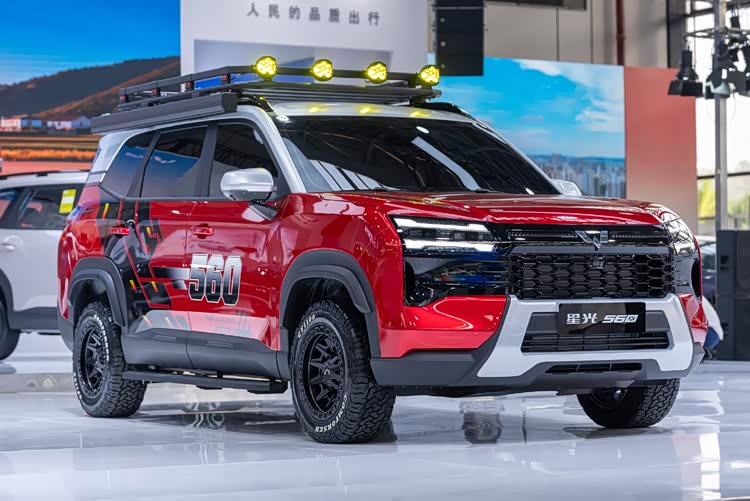 现场我们既能看到素车状态,也能看到改装版本的 星光560(参数|询价)。早在谍照时期,我就觉得这车外形天生适合改装,如今见到官方改装的实车,果然印证了我的眼光!它完全继承了当年爆火的“宏光侠”那股劲头,甚至更显霸气!全新X家族系列的设计放在这里更帅了,不过在我看来,展车的改装风格还有点收敛,如果能加装一套竞技防撞杠——那气势可就真的谁都挡不住啊!哈哈!