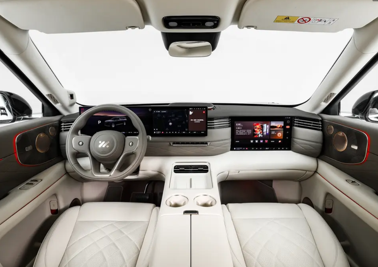 内饰暂时还不知道,但不排除与智己LS9相同设计理念,如果真是这样的设计也显得内饰很豪华,至少第一眼感觉很宽敞,也是充满了科技感。特别是车门处扶手和音响位置的立体感很强,配合上氛围灯后营造出的豪华感更加明显。用料估计也是相似,纳帕真皮覆盖整车,菱形格的缝线工艺带来更细腻的档次感。那科技感更不用说,包括配置和舒适性,我觉得认为已经成为国产车的标配,所以这两点也不用质疑了。