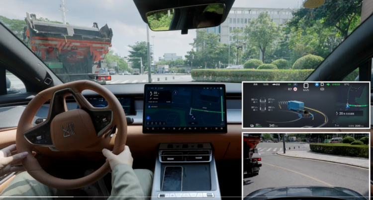 实际上,今年上半年,我们在试驾比亚迪汉EV的时候,也试驾了天神之眼B的版本,当时驾驶这个版本的车型,在西安城郊行驶,在基本的路线选择、超车时机、转弯逻辑方面,表现就已经算是比较稳定了,但是相当来说还是比较保守。正好在那个时候,我们试驾了华为乾崑智驾版本的车型,那套系统非常果断、激进的风格,给我们留下了深刻的印象。而且那个时候,天神之眼B还不能实现高速收费站的自主通行等功能,相当于到高速收费站前500米,就要人为接管了,所以当时我们认为,天神之眼B具备了城市NOA的基本能力,但是离实现不间断的驾驶辅助能力,还有一定距离。