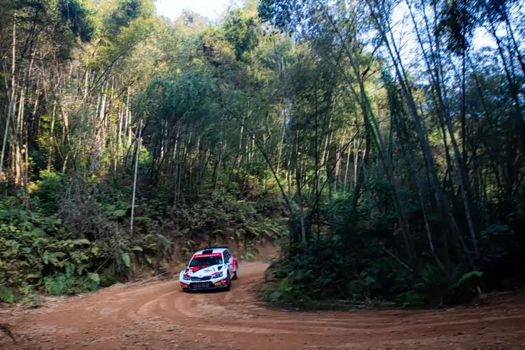 速度超群的Team Pegasus星速赛车车组林德伟/刘田杨继续在今天的比赛中展现他们的强悍实力与Toyota GR Yaris(参数|询价) Rally2赛车的卓越性能。该车组连续斩获三个赛段最快,冲线用时也不断刷新,本站赛事的老邹屋村-大山脚下赛段纪录最终被林德伟/刘田杨定格在8:01.73。