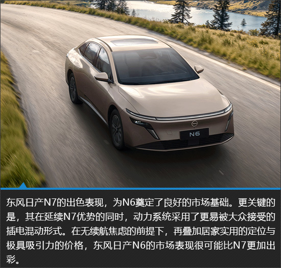 凭借亲民的售价、宽大的空间以及合理的配置,东风日产N7自上市后便收获大量订单,成为了合资品牌在新能源时代逆转颓势的优秀案例。而东风日产也是乘胜追击,推出了首款插电混动车型N6,盼望其与N7双剑合璧,重现燃油车时代的盛景。