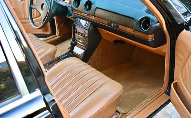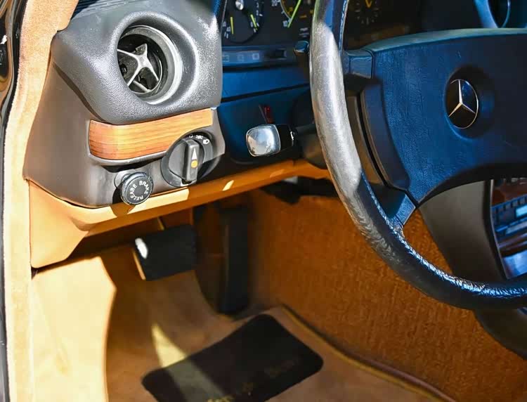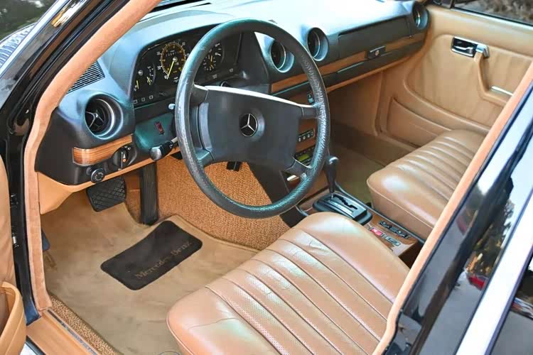 更难得的是,它的内饰状态堪称惊艳:座椅皮革没有明显的磨损和老化,仪表盘刻度清晰,中控台按键回弹有力,丝毫看不出这是一台历经四十余年的老车——这正是W123的过人之处,内饰用料扎实到离谱,即便是高频次使用,也能保持极佳的完整性。