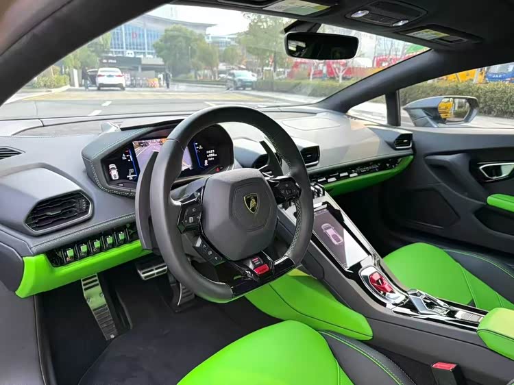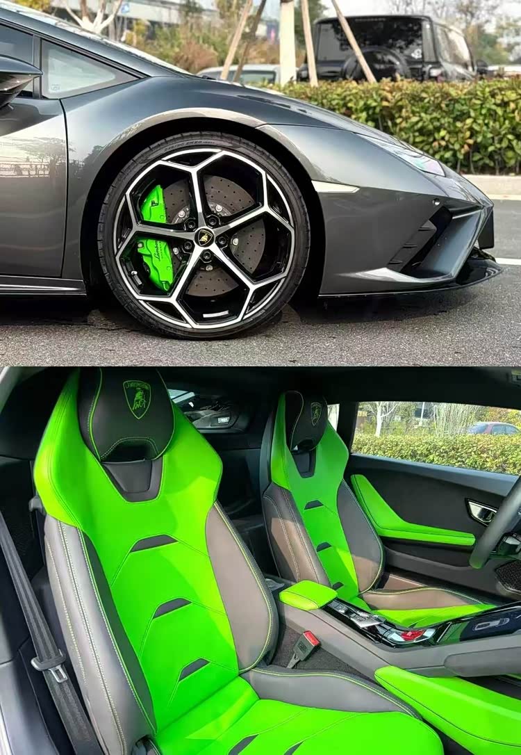 23年兰博基尼EVO,灰色外观/绿黑双拼内饰,配置:20寸轮毂,绿色卡钳,底升,碳陶刹车,头枕刺绣,透明机盖,电动座椅等!仅行驶:8000Km 售价:228.8W
