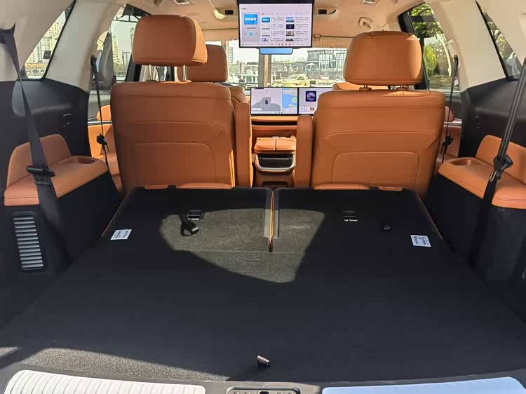 魏牌全新蓝山智能进阶版还延续了一贯的大空间与舒适体验优势。近1.26米高吊顶设计、1米级⼆排腿部空间、851mm三排头部空间,让每一排乘客都能舒展自如,坐享VIP待遇。副驾零重力座椅,打造“女王座驾”。二排双电动腿托,支持通风、加热、按摩等功能,第三排座椅也支持加热/靠背调节,按比例折叠放倒后还能进一步提升座舱空间实用性。