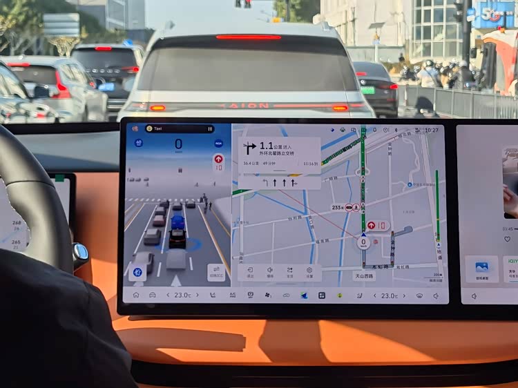 几个印象比较深的场景是,在一条人车混行的窄路上,魏牌全新蓝山智能进阶版提前减速避让突然冲出的电瓶车,中控屏上的思维链卡片实时显示着“识别非机动车-预判横穿风险-执行减速”的完整逻辑,这种透明感比单纯的“主动刹车”更让人安心;还有在外环高速上,发出“离前面大车远一点”的指令后,系统便在第一时间调整了跟车距离,整个过程一气呵成,像极了驾驶经验丰富的老司机;下了沪昆高速,过一个被大巴车挡住视线的路口时,没等踩刹车,车已经提前慢了下来,这种“未雨绸缪”的思维也杜绝了路口鬼探头或闯红灯吃罚单的风险。