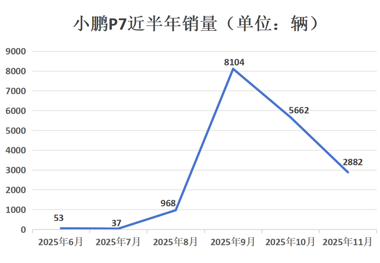 本以为月销8000+只是全新小鹏P7的起点,没想到接下来两个月新车销量直线下滑,其中10月销量跌至5662辆,11销量再度腰斩至2882辆。从如今这个局面来看,全新小鹏P7的火爆大概率只是“昙花一现”,那么究竟为啥这车卖不好?我们总结了以下几大不足: