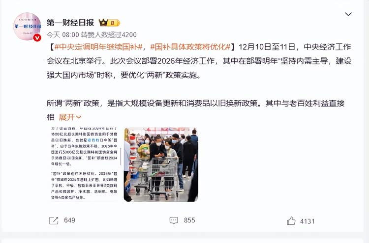 日前,中央经济工作会议在北京举行,对于咱们汽车圈而言,最核心的一点就是明年将延续国家消费品以旧换新补贴(国补)政策,但具体细则将优化调整。