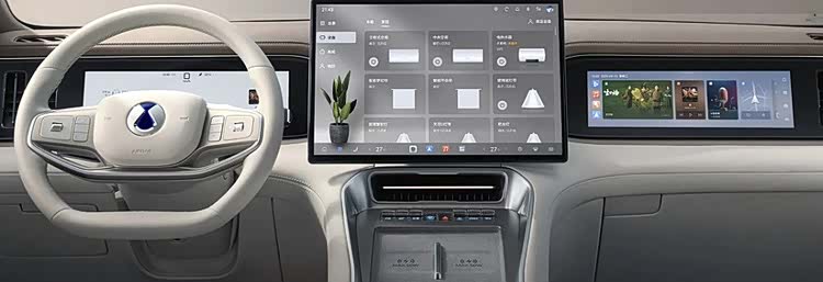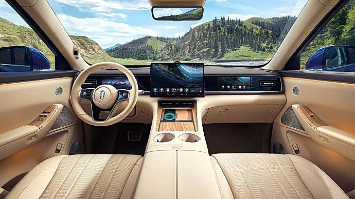 内饰采用全新设计方案,中控台区域搭载了三幅式方向盘、AR-HUR华为临境抬头显示系统、全液晶仪表盘、16.1英寸悬浮式中控屏、副驾娱乐屏等设计。