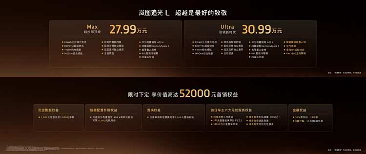 即日起,选购岚图追光L的用户可享受价值高达5.2万元的首销权益。追光L的到来,不仅以领先的三电技术以及极寒环境下稳定快充的硬核实力破解了北方用户冬季用车焦虑,更在智能化、底盘操控等核心维度,打造了旗舰级体验,用技术重塑豪华标杆,为追求真正价值的用户,提供了一份超越期待的答案。