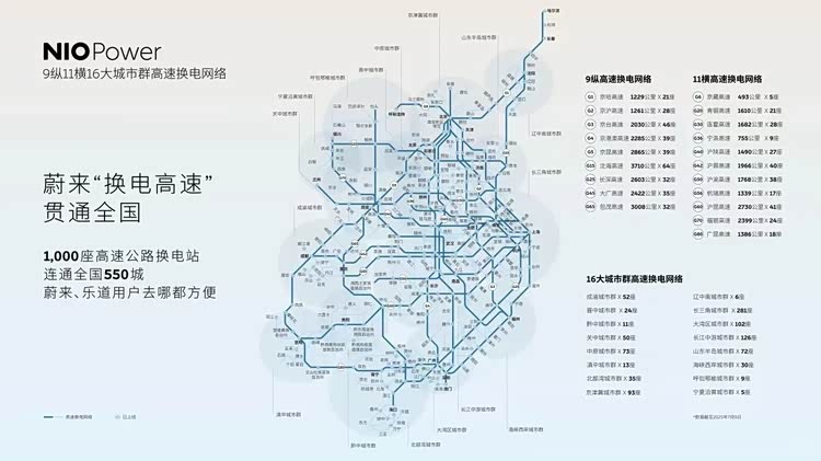 首先是换电网络的“密度优势”。截至目前,蔚来能源在全国累计布局充换电站3577座,其中乐道用户可用的换电站已达2224座,高速换电站超1000座,“9纵11横16大城市群” 的换电网络已经成型,平均每180公里就有一座换电站,热门旅游线路更是实现“每50公里一站”。