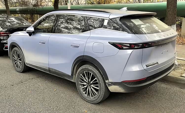 车侧的设计变化较大,告别了现售版本的敦实车身结构。明显加大倾角的C柱形成了溜背布局,悬浮式车顶和半隐藏式门把手等细节设计,让车身姿态更加动感,整体风格更显年轻。而且,全新一代瑞虎7 PLUS的车身三围为4655/1880/1690mm,轴距达到2720mm,长度和轴距都有明显提升,车内空间想必会更加宽敞舒适。