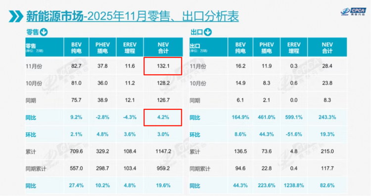 图/2025年11月新能源市场零售出口分析