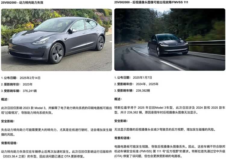 就拿电动车标杆特斯拉来说,2025年同样针对后视摄像头功能异常、动力系统软件漏洞等问题发布了多起召回计划,但由于其将召回视为“快速响应和修复能力”的机会,并未引发大规模信任危机。